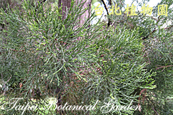 葉的描述:葉鱗片狀或針狀,三片輪生,幼樹之葉挾尖形。