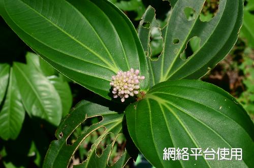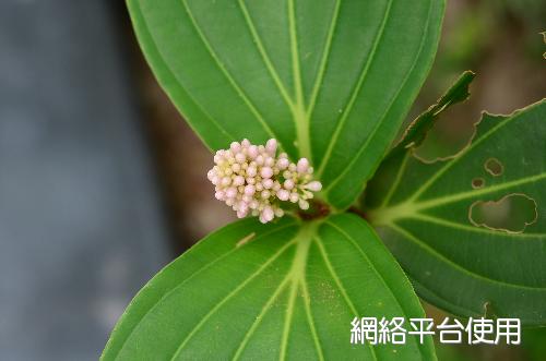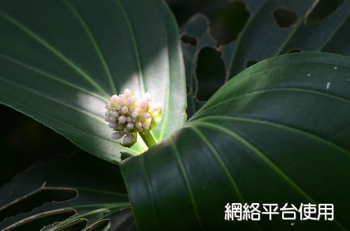 葉的描述:對生或三葉輪生,卵圓形或橢圓形革質葉片,葉脈5或7。葉長10~20㎝,葉寬10~15㎝,葉基抱莖。