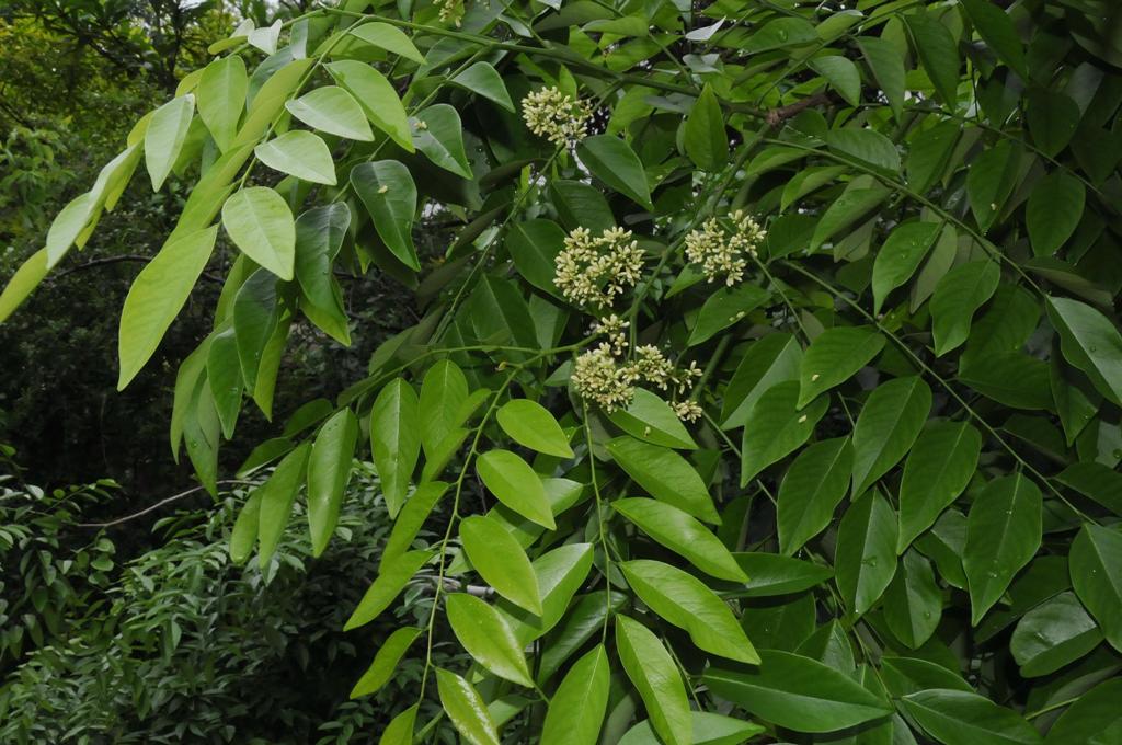 葉的描述:奇數羽狀複葉,長15-26cm;小葉9-13枚,近紙質,卵形或橢圓形,長3.5-8cm,寬1.5-4.0cm,先端急尖,鈍頭,基部圓形或寬楔形。