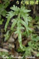 葉的描述:頂羽片多少羽裂,游離脈,側羽片之下基小羽片特別長,並且羽裂,葉呈卵圓形。葉二型,營養葉羽軸兩側小羽片不對稱。